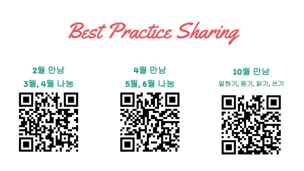 조정숙 선생님과 조하영 선생님의 여러가지 아이디어 나눔을 듣는 시간이 되었습니다. 여러가지 좋은 자료 나눠주셔서 감사합니다.